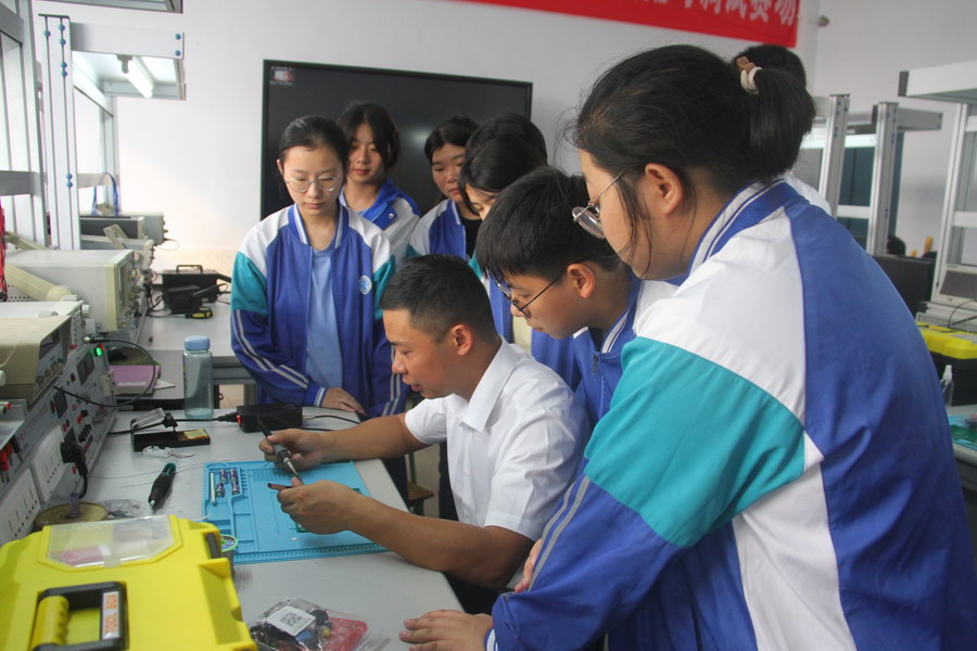 陆金虎在给学生上电工技术基础实训课程。